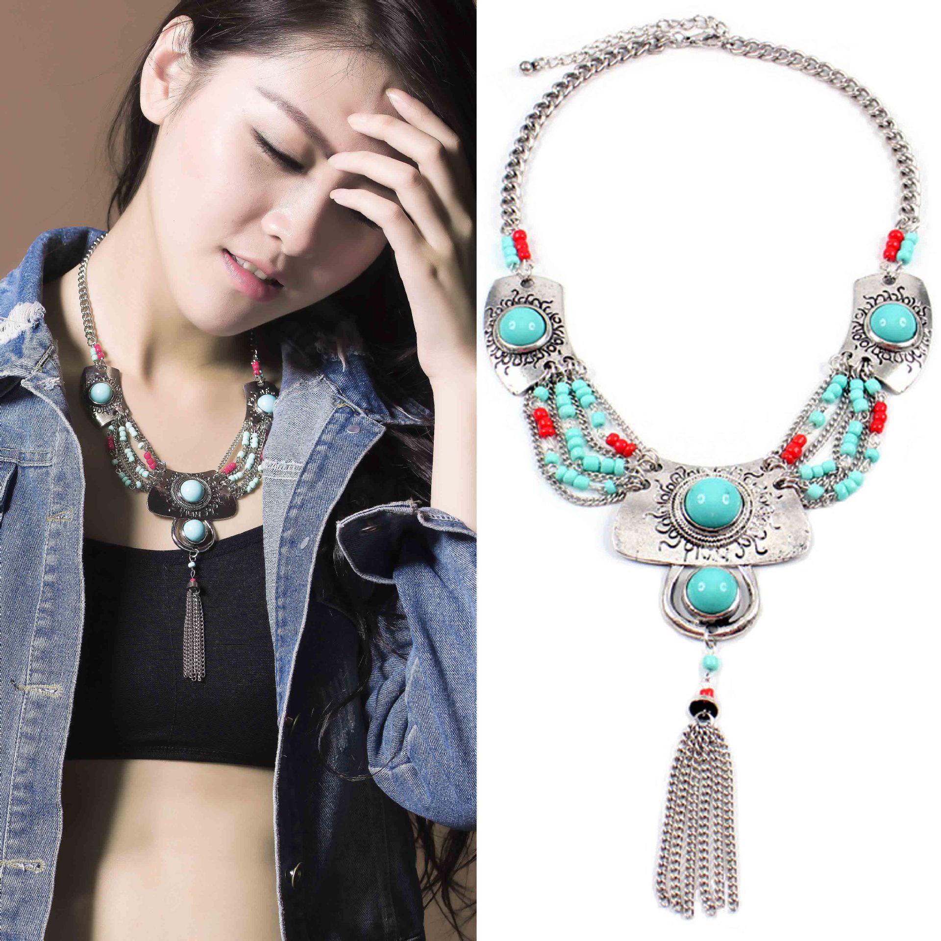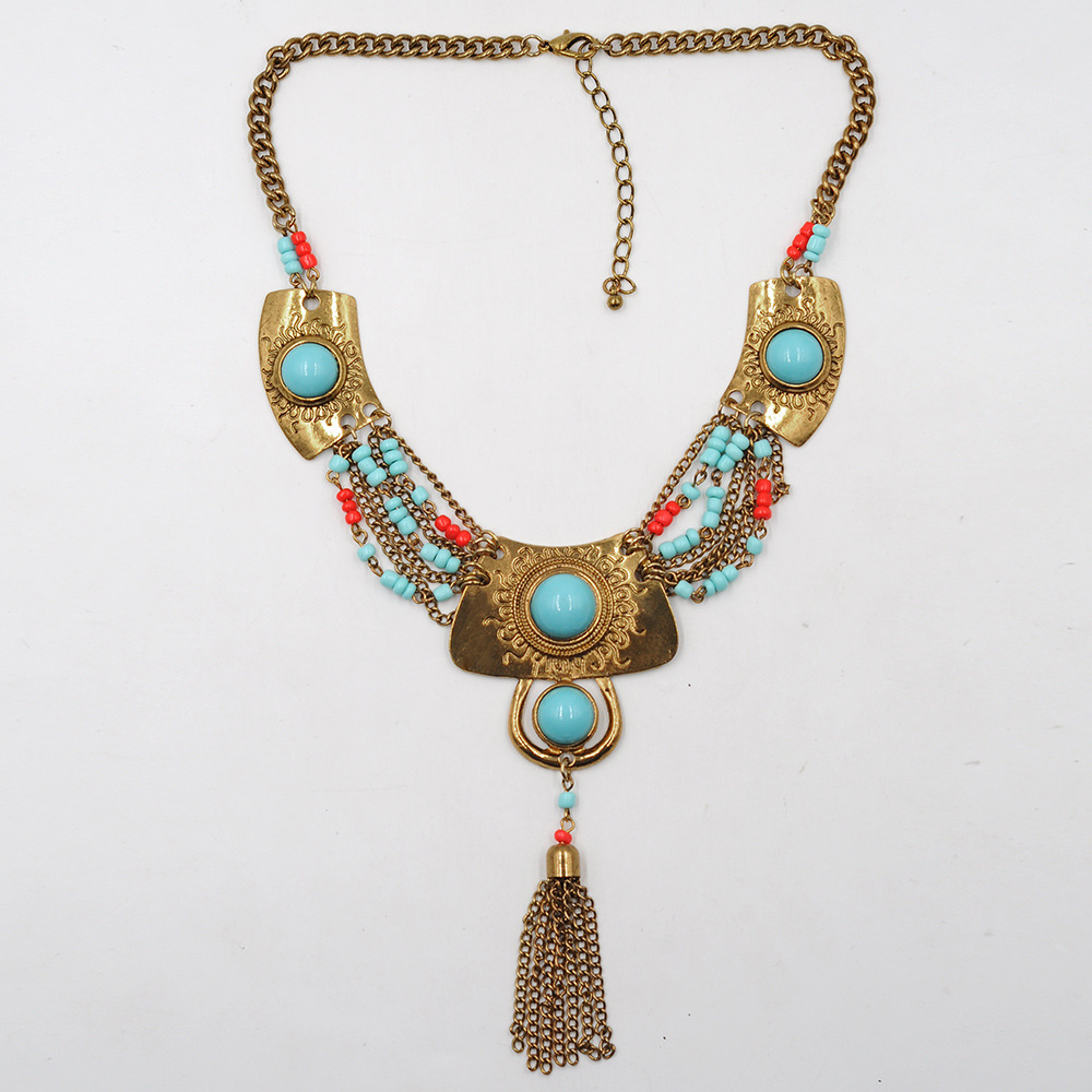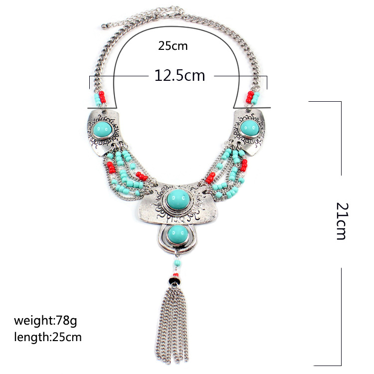 Bohemia Sweater Chain Tassel Necklaces Turquoise Chain