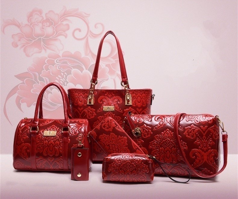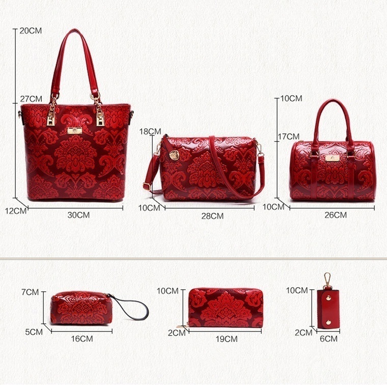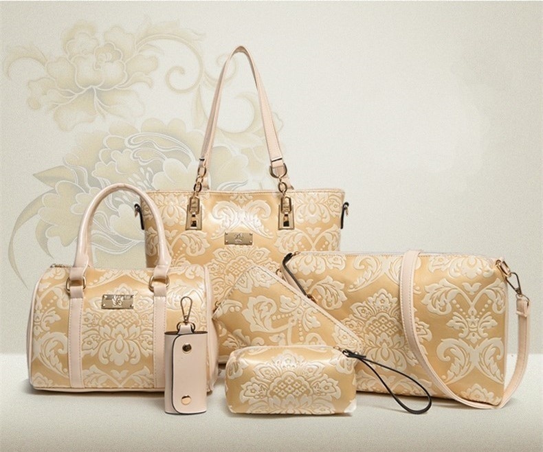 Luxury 6 Bags Handbag Shoulder Bag Tote Wallet Key Bag PU Leather Design Bag for Women