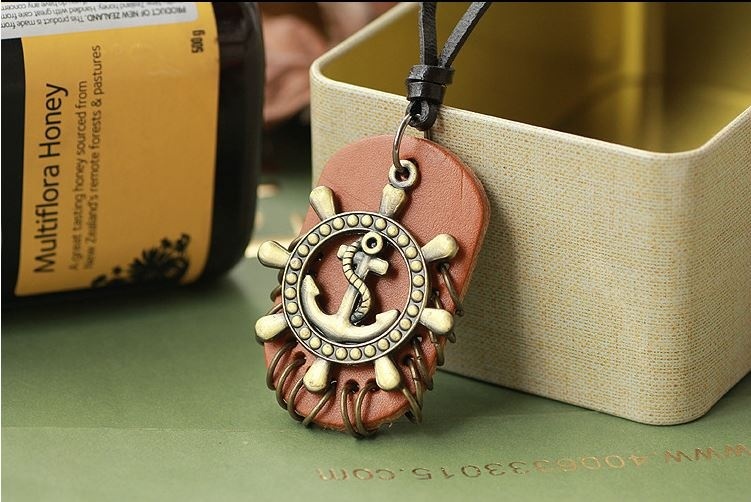 Caribbean Pirates Style Pendant Material: Metal and Leather Size: 40 cm-45 cm adjustable Pendant size: 5 cm * 4 cm