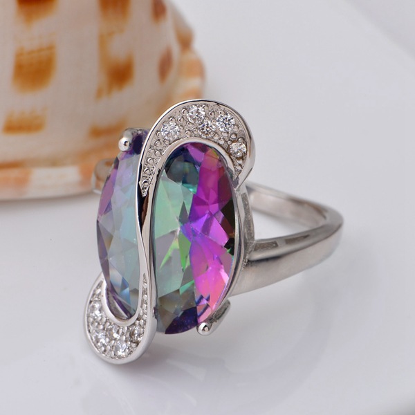 Platinum Plated 18K 925 Silver Inlaid Stone Series Jewelry Colorful Stone Deluxe Edition ring Austria crystal