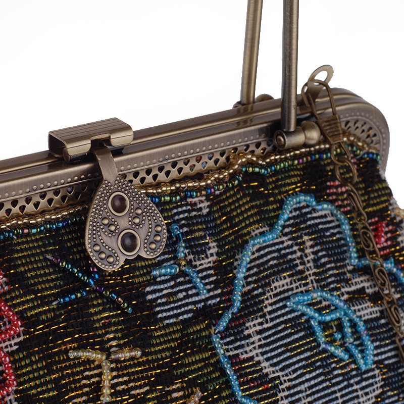 Vintage Linens Beads Embroidered Bag Women's Portable National Dinner Party Bag