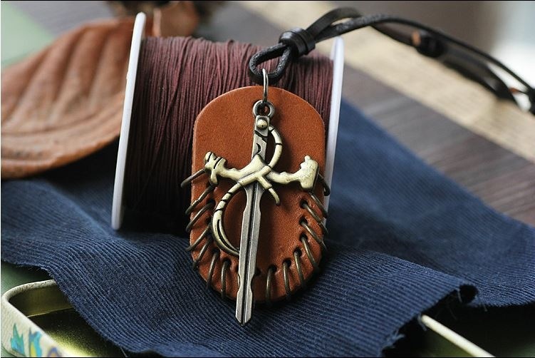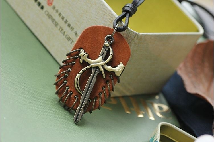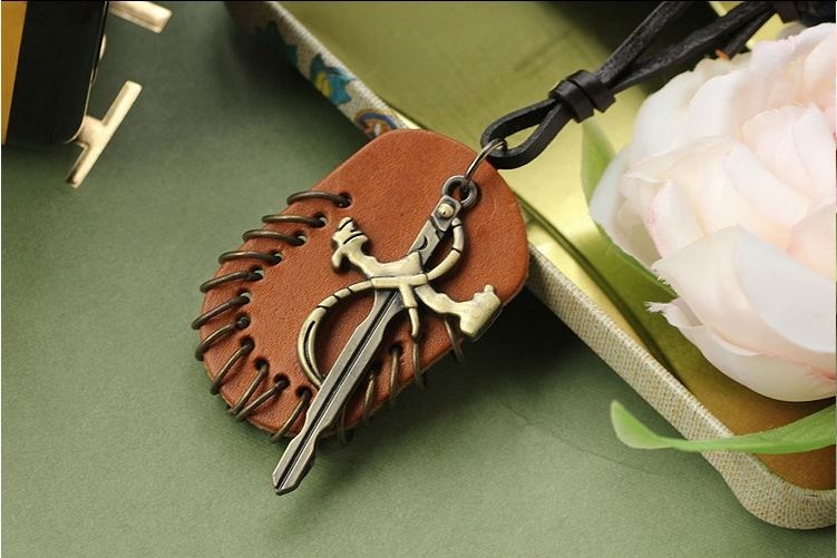 Material:Leather Size :Adjustable Length:40cm-45cm Pendant Size:47mm*30mm Color:As pictures Quantity :1 Pcs